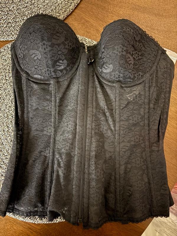 The bustier was beautiful, but unfortunately did not properly fit me. I am a 42D, wear a size 16 top and a 12-14 bottom. The sizing was good in the waist, but gaping around the breasts. Had to return it. Also, it is quite difficult to put on.