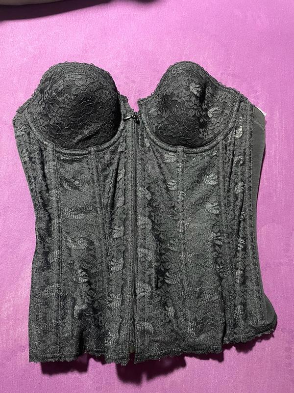 This strapless corset bra exudes luxury both in look and feel. It features delicate black lace detailing, a front zip closure, and a mesh back with clasps in the midline to give you a perfectly sculpted silhouette. When I wear it, I feel both sexy and comfortable. It's the perfect choice under fitted dresses and tops. The bra is subtly padded, offering excellent support, and the material is soft, not scratchy at all.