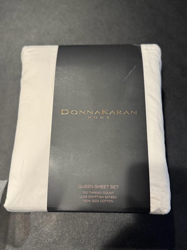 These Donna Karan sheets are absolutely wonderful it's a clean sheet set that comes with a fitted sheet of flat sheet and two pillowcases at 700 thread count of lux Egyptian sateen with 100% Giza cotton woven from the world's finest fibers it's machine washable which I love these are so soft and feel so great when you're sleeping at night when it's against your skin they have enough weight the quality is outstanding these make me feel cool at night I don't get hot they're very easy to care for I would love to have this sheet set and every color this is my first time trying this brand in HomeGoods and I am absolutely loving them I know they will last I love the bag that it comes in to keep them clean I would absolutely recommend trying