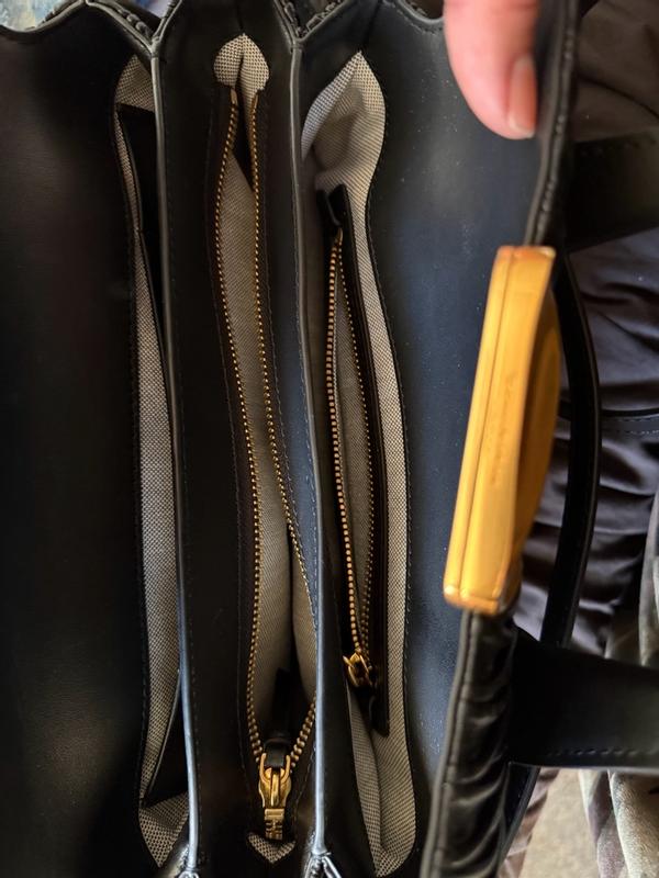 This bag!! I adore this purse. The style is unmatched. I have received so many compliments. I love everything about it. The outer style is beautiful and durable. I love the magnetic closure. I am one who will walk around with my purse wide open and love that this will auto close for me. The layout of the inside is marvelous. Three sections, with sturdy dividers. Two interior pockets one with a zipper and one that is a card/ phone holder. Definitely recommend.