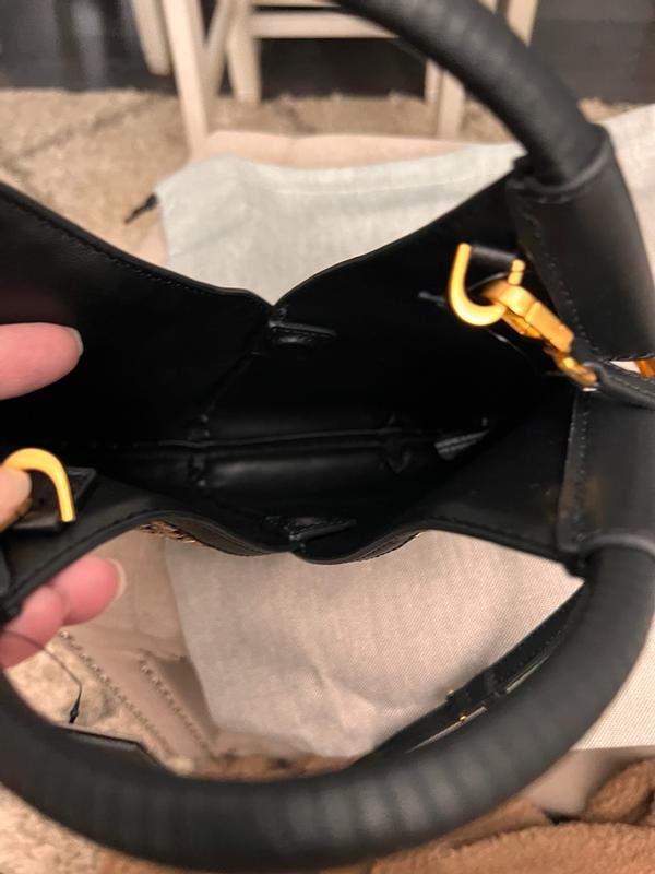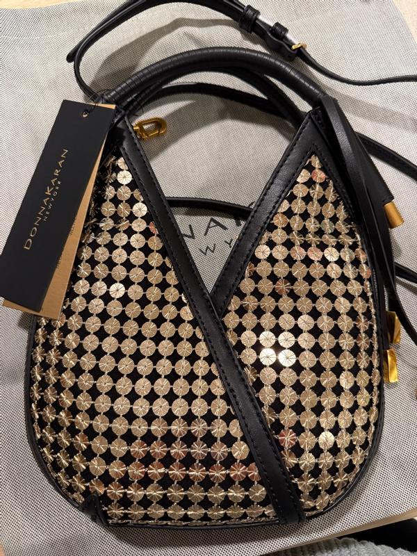 This bag comes with a bag to store it in when it's not in use. The strap has a classy buckle and is black leather. It has tassels with gold detailing. The outer bag it's embroidered with gold sequins. Contains a magnetic button snap on the inside covered in leather. Just big enough for a wallet or clutch. Cross-body or over the shoulder wear. The strap is removable and adjustable. Very classy. Could be worn with both casual and dress clothing. This item is definitely luxury and I'm grateful to have this in my collection. 10/10 recommend.