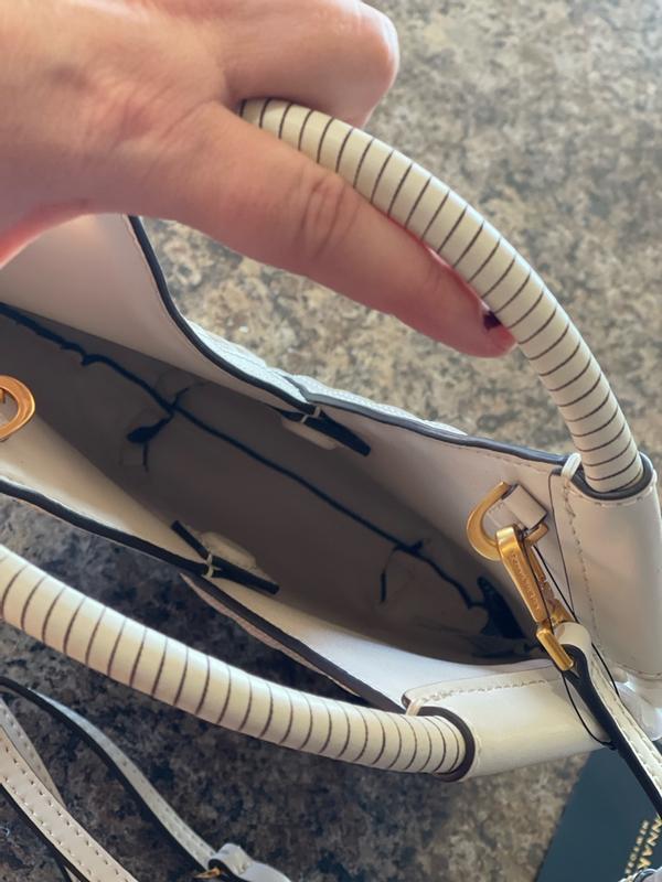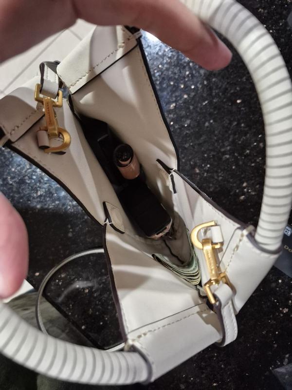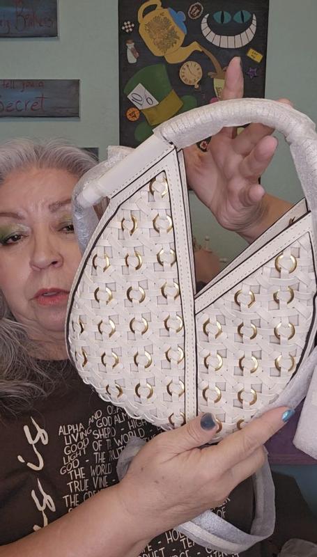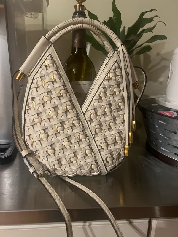This purse is absolutely gorgeous! The bone color, the weight, the craftsmanship. I adore everything about this "mini" purse. Every golden accent is set just perfectly on one side of the purse, the other is just that beautiful bone color basket weave. The strap is removable, but I preferred to leave it on and tuck it in if needed. The top has a magnetic closure, so keep that in mind while packing. I found that this was perfect when I was out solo and just needed a few necessities. I adore this purse so much, it is different from the larger bags I carry, but I fell in love with this as soon as I got my hands on it! I can't say enough about this purse, it will transition well and I hope to have it in my closet for a very long time :)