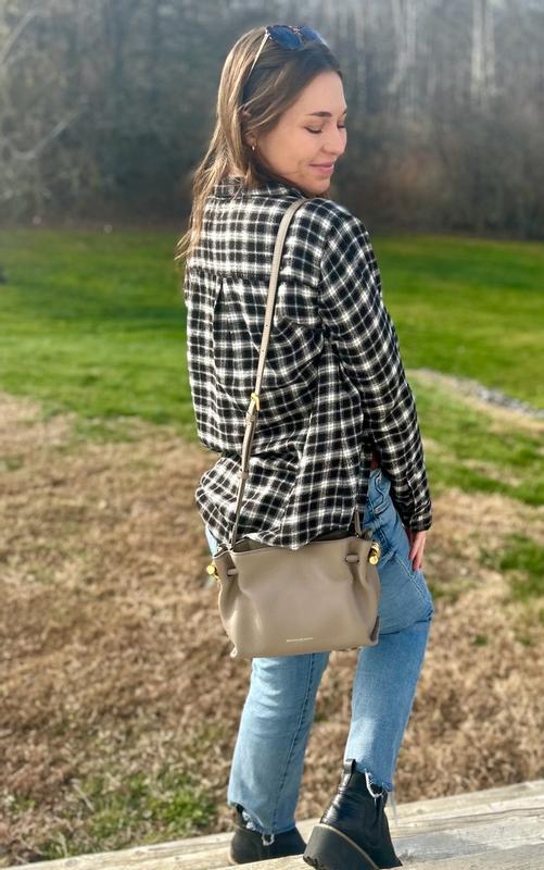 I’ve been obsessed with this Donna Karan crossbody, and honestly, it’s become my new mom sidekick. The soft, high-quality leather feels so luxe, but the best part? It’s the perfect size for real life, especially when I’m out with the kids. The shape is super roomy without being bulky, so it fits all the essentials like my phone, wallet, lip balm… and most importantly, snacks. Fruit pouches, mini crackers, fruit snacks — all the little things my kids always ask for the slip right in without making the bag look stuffed. The magnetic gathered sides and gold hardware keep it looking stylish, even when it’s filled with Goldfish. The crossbody strap is comfortable and stays put, which is such a win when I’m chasing after a toddler or bending down to tie shoes.