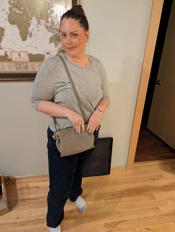 The Donna Karan Cashmere Crossbody in Cloud is my new favorite grab-and-go bag! Don't let the size fool you—it's small but mighty, fitting all my essentials perfectly. The sleek design and the luxuriously soft "Cashmere" material make it feel so elevated. It's the must-have minimalist accessory for day or night! Obsessed. 🤍