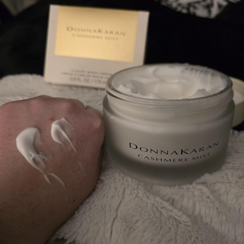 This is such a luxurious body cream. It smells so pretty, just like the Cashmere Mist perfume. It absorbs quickly on skin and doesn’t leave a greasy feeling. The glass jar it comes in is heavy and well made. I also really like that there is a plastic cover that sits on top of the jar to keep the product fresh and prevent it from getting inside the lid. I would highly recommend this if you enjoy a nice, subtle scent & super soft skin.