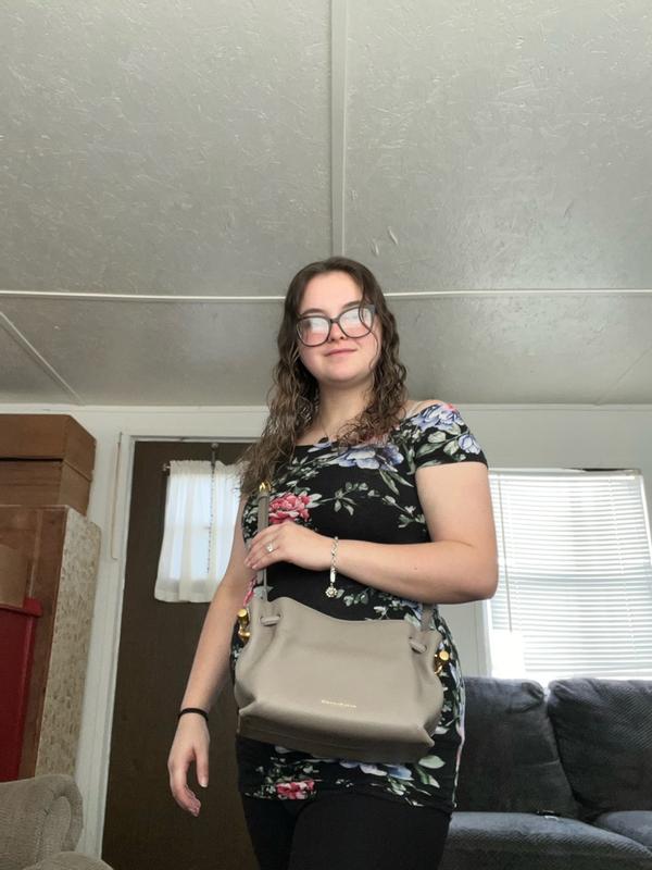 I’ve been obsessed with this Donna Karan crossbody, and honestly, it’s become my new mom sidekick. The soft, high-quality leather feels so luxe, but the best part? It’s the perfect size for real life, especially when I’m out with the kids. The shape is super roomy without being bulky, so it fits all the essentials like my phone, wallet, lip balm… and most importantly, snacks. Fruit pouches, mini crackers, fruit snacks — all the little things my kids always ask for the slip right in without making the bag look stuffed. The magnetic gathered sides and gold hardware keep it looking stylish, even when it’s filled with Goldfish. The crossbody strap is comfortable and stays put, which is such a win when I’m chasing after a toddler or bending down to tie shoes.
