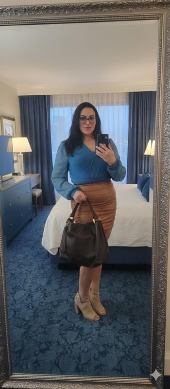I love this bag. It’s very versatile, and I feel like it can be worn like casual or more dressed up. And it’s big enough that I can just kind of throw everything in there but it does have pockets and everything. The color is gorgeous and the quality of the material is great. I love it.