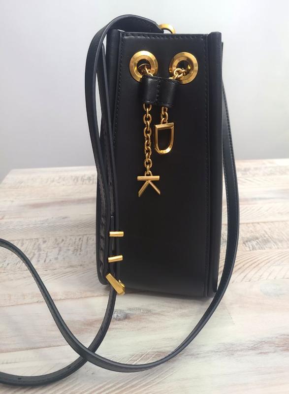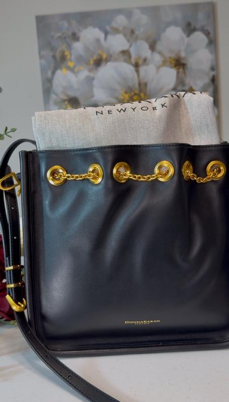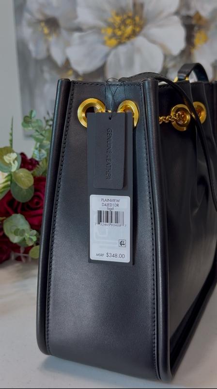 This is a beautiful purse. It is very soft leather. The black and gold is a very simple, classy, and timeless style. It feels like it is very good quality, and this purse can go with any outfit. I appreciate having a staple purse that is very versatile. There is one inside pocket and a lot of space inside.