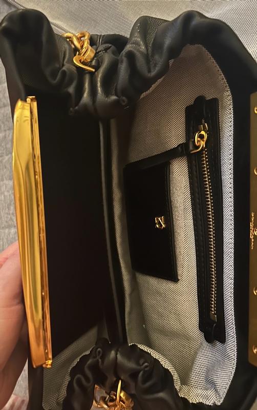 Just received this bag yesterday and it does NOT disappoint! It’s so luxurious, I love it! Big enough (but not too big) to put stuff in and stylish as heck. Love the chunky gold chain.