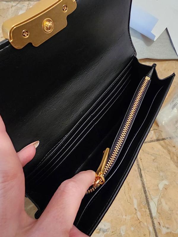 The only two things I could fuss about are the lack of a long chain and the gold metallic. Otherwise, the quality was topnotch as is the expansive interior features. I can see using this inside a larger bag for quick grab and runs or thise cheap bags that need interiors. This is a gem for the light nights out too. Classic black and one hand needed to hold. The existing short chain seems fit for the wrist.