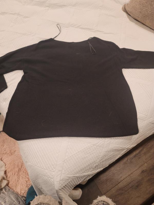 I like the sweater and it’s great over leggings and by adding a scarf makes an elegant pulled together look. However I did not give 5 stars because this is the roughest cashmere I have ever experienced. It’s still soft but lacks the plushy feel of cashmere. I expected more from a Donna Karen piece