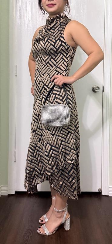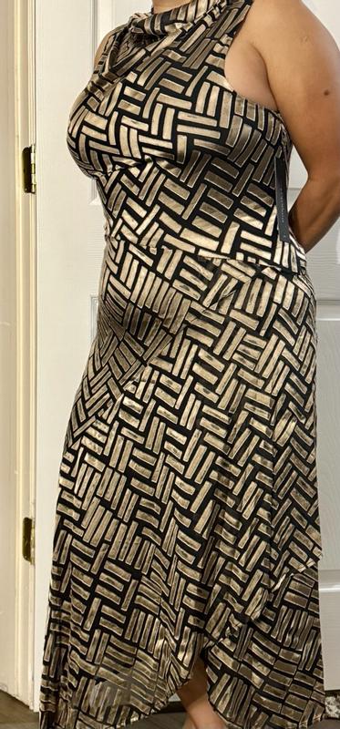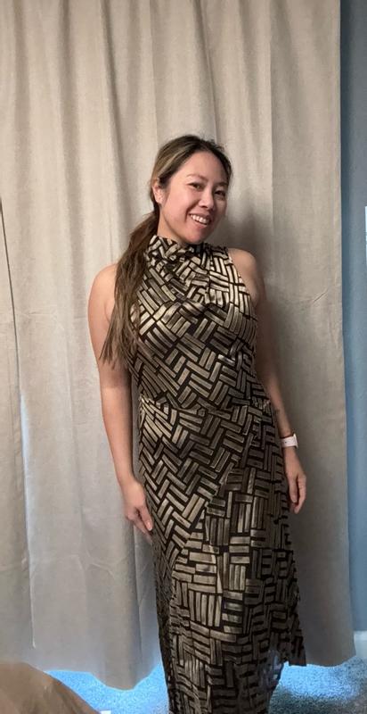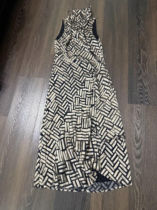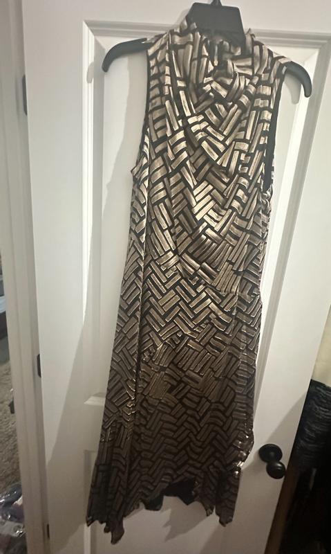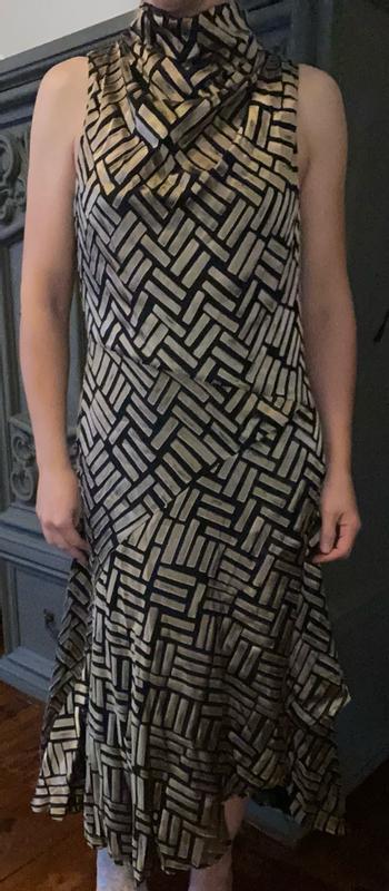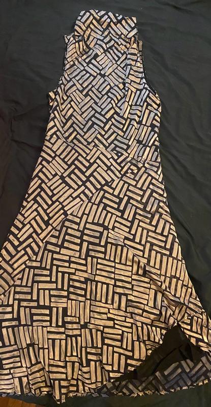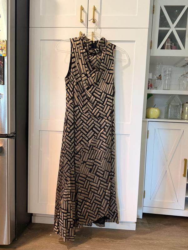 When I say this is a gorgeous dress, I truly mean it. The fabric flows beautifully as you walk, creating a graceful, elegant silhouette that feels effortless. I paired mine with a slim black waist belt and black heels for a chic, polished look—and my husband absolutely loved it. Though I don’t often take photos, I can confidently say the dress is just as stunning in person as it appears online. The material is stretchy yet breathable, offering both comfort and a flattering fit. You can move easily and feel comfortable all day without sacrificing style and it fits perfectly. What I love most is the versatility: it can be dressed up for an evening out or worn as-is for a more understated, stylish look. The quality is excellent—the fabric feels durable and well-made. I wash mine on a delicate cycle and hang it to dry, and it’s held up beautifully. The pattern and design perfectly match my personal style. If you're considering it, I highly recommend purchasing this Donna Karan dress—you won’t be disappointed.