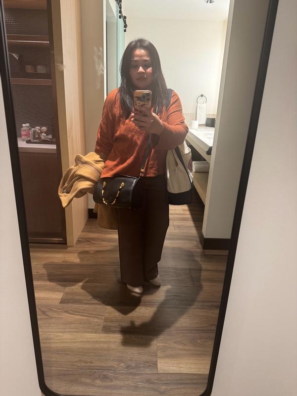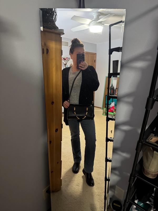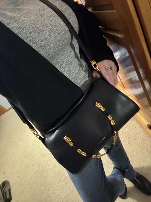 Absolute class, beauty & elegance! smooth, soft black shade with gold-colored hardware adds just the right amount of fancy. This Donna Karan bag is compact yet spacious, phone, keys, cards & makeup fit comfortably. The duo magnetic snap closure is one of my favorite parts! Quiet, yet secure. It has convertible chain strap for either shoulder or crossbody wear, making it practical for various occasions. It’s the perfect combination of glamour & casual. I can’t wait to wear this out for Holidays!