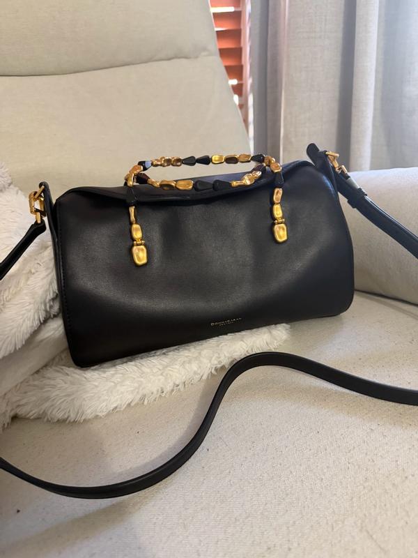 I’m very grateful for the opportunity to share my opinion in exchange for this beautiful DKNY Crinoline Satchel. The leather is incredibly soft and feels truly high-quality. The magnetic closure is super convenient, and the bag is both spacious and elegant. The black color works for almost any occasion, while the gold details add a sophisticated touch that makes it perfect for evenings out, theater, or dinner. It holds all my essentials without feeling bulky, and the structured shape keeps it looking polished. The design feels timeless yet modern, and it elevates even simple outfits. I prefer to hand-hold it most of the time, so having a removable strap makes it extra convenient. Overall, a gorgeous and refined bag I’m excited to keep using.