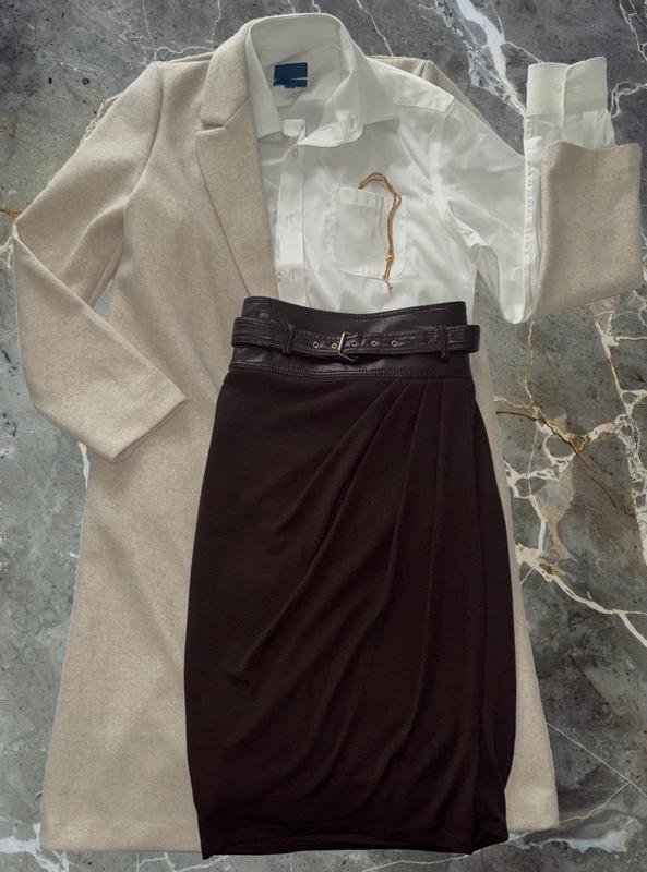 This faux wrap skirt is beautiful. I love the chocolate brown color. It is comfortable and fits well. Looking forward to styling this different ways.