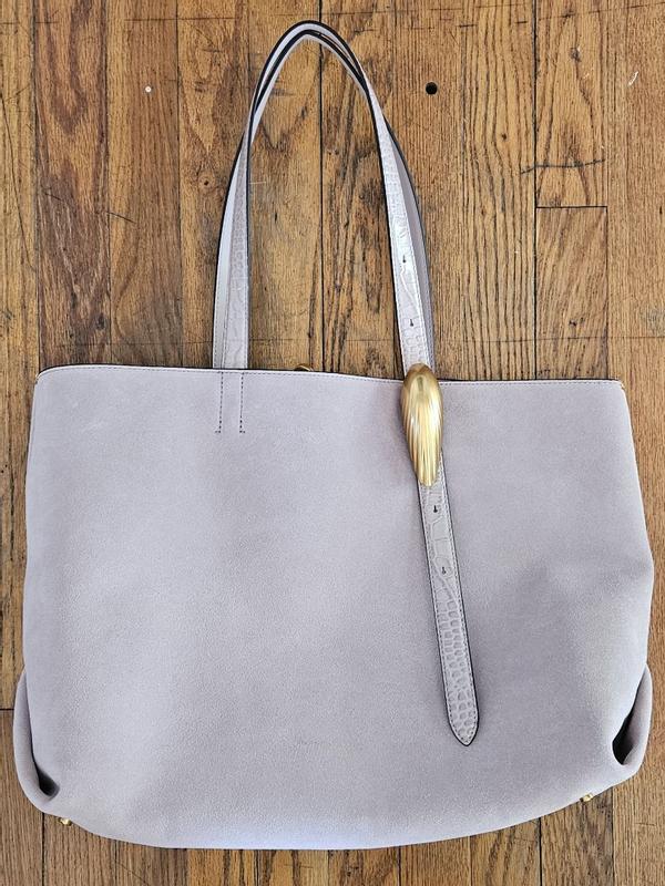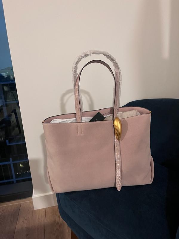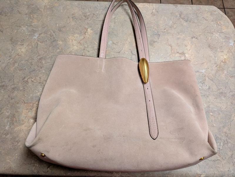 I am a big purse girl and this beautiful leather bag does not dissappint! Like most large tote bags, there is no zipper to keep things from spilling out, but it does come with a detachable slice sized clutch inside for the essentials which is greatly appreciated for on the go and use with the large bag. The feet on the bottom give it an extra nice touch to preserve the base of the bag. Honestly, my one gripe about this bag is this giant gold shell detail that serves no purpose; its functional in that it adjusts the strap length, however, the other strap does not adjust making no point, and gaudy, in my personal opinion. Overall, a beautiful and high quality person in a super feminine color. I'm happy to sport her in my collection ♡