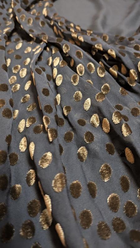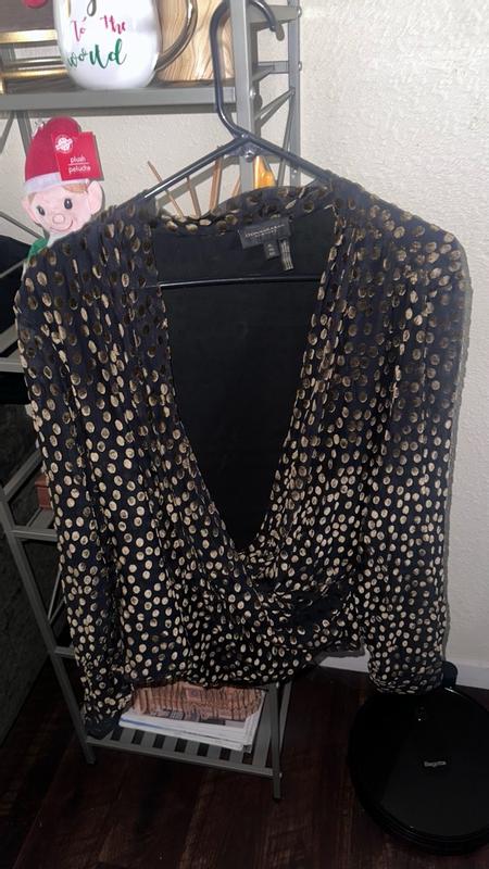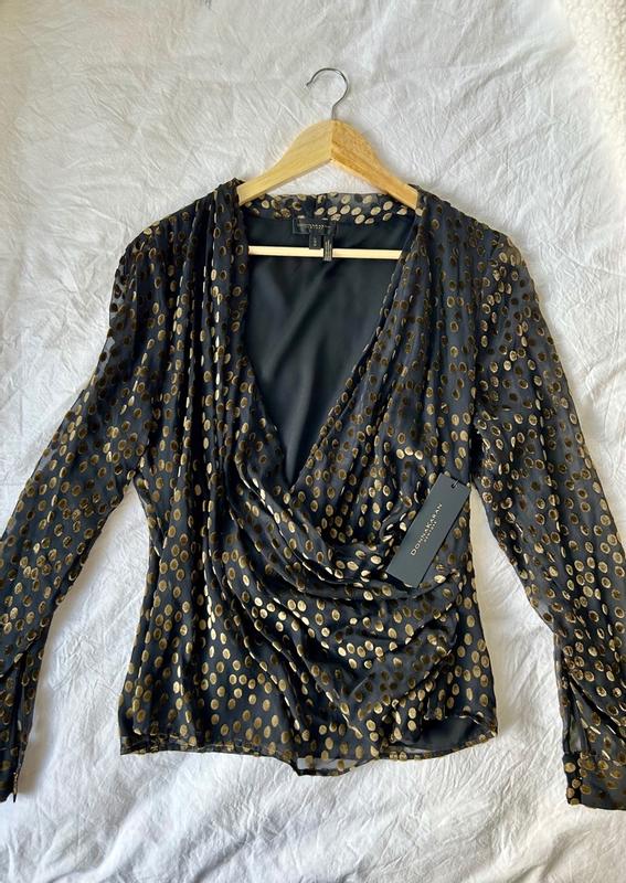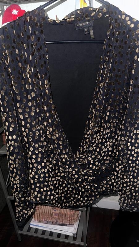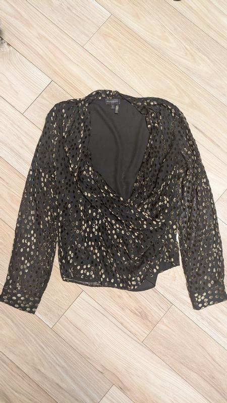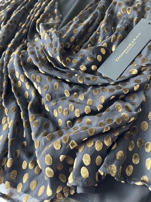 I’ve never owned anything Donna Karan because her things are generally more expensive than I can afford. So I’m very happy to finally own one of her apparel! The sleeves are see through and the v dip is a little more revealing on me than I like. So I plan to wear a tank top underneath but otherwise I think this is such a classy top. The gold print is a pretty shade and the velvet is soft to touch