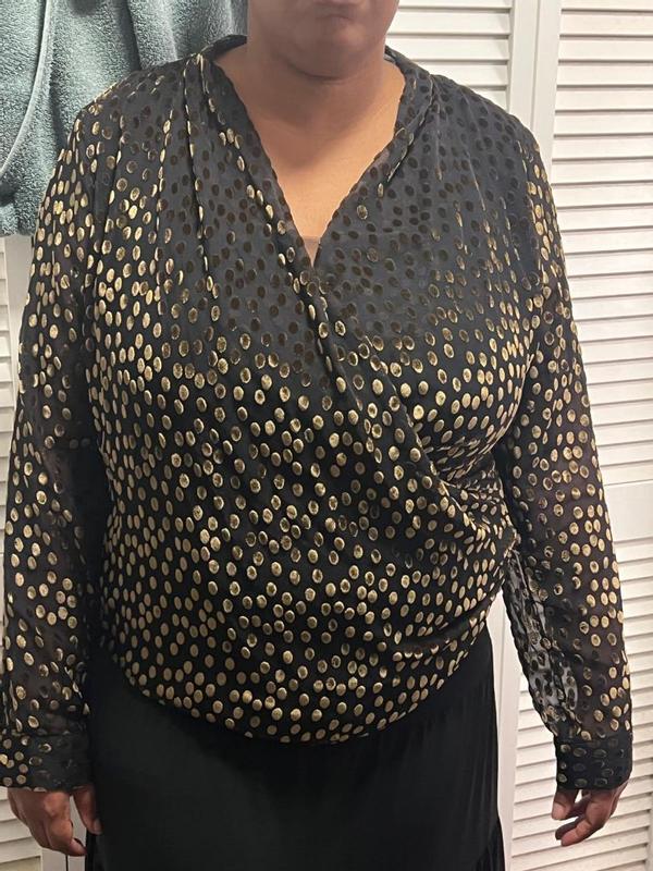 Women's Long-Sleeve Burnout Velvet Faux-Wrap Top