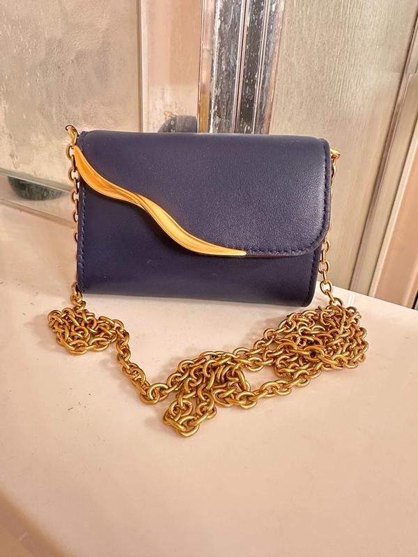The absolute perfect wallet on a chain. It is so cute and compact while being functional. It fits all the necessary cards and cash. I love the navy and gold combo. The wallet is sleek and sophisticated. It has a snap closure and multiple slots. It is made of real genuine leather which will hold up during the years. It is easy to throw in your bag or just wear on its own.