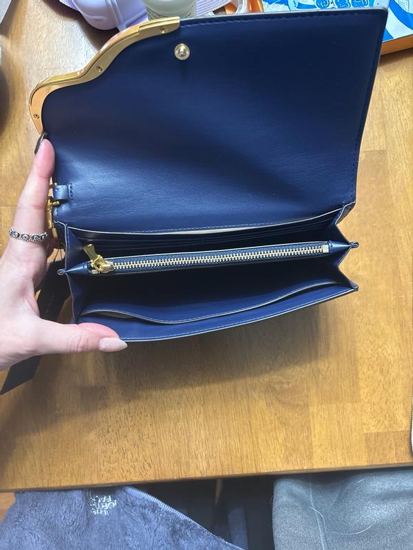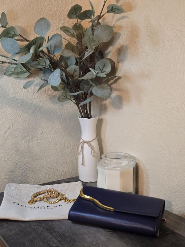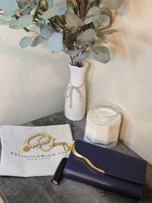 I absolutely love this Donna Karan New York wallet. The design is incredibly chic — the sleek black finish paired with the unique gold wavy accent gives it such a classy and sophisticated look. It feels luxurious in the hand, and the material is smooth and high-quality. The gold chain detail adds an extra touch of elegance, making it perfect to use as both an everyday wallet and a small evening clutch. The craftsmanship is excellent, with clean stitching and a sturdy structure. It also comes with a protective dust bag, which is a nice bonus for keeping it in great condition. Overall, this wallet looks and feels expensive, stylish, and timeless. A beautiful accessory that truly elevates any outfit. Highly recommended!