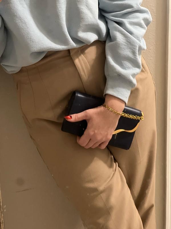 This wristlet is so cute! I love the color and the gold accents. It is smaller so it’s definitely for a cute night out and not an every day bag. It is a bit heavy on the wrist. I do wish it had another strap.