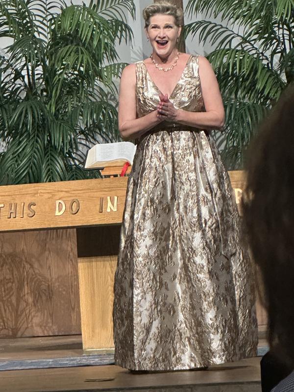 It is a gorgeous dress. I am a classical singer and wore it for a Christmas concert. It does run large, especially in the chest. I put on a few pounds this year, so my mermaid dresses are not as flattering. I went looking for an empire waist dress with a plunging neckline, and several reviews correctly informed me that I would not need to size up. If the pounds come off, I will have the top altered (which I may do anyway, as my husband does not like the way the top fits). Women especially covet this dress. One woman, after complimenting my singing, said the dress inspired her to a new style.