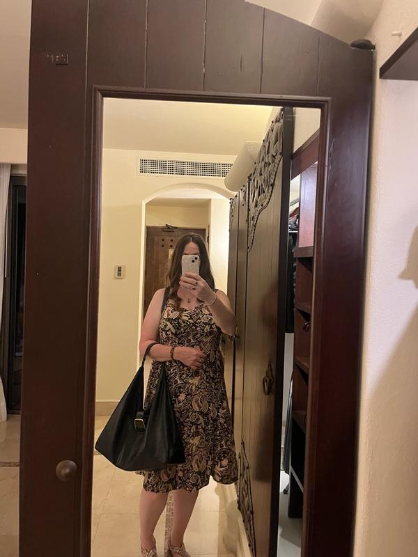 This bag is stunning. The size is perfect for a full day out and holds a ton without feeling bulky. The faux leather looks great and feels durable. I used it as my carry-on to Cabo and then wore it to the Art Walk and a fancy dinner, and it worked for all of it. It can be dressed up or down, and it’s definitely eye-catching without being over the top. A solid and functional statement piece.