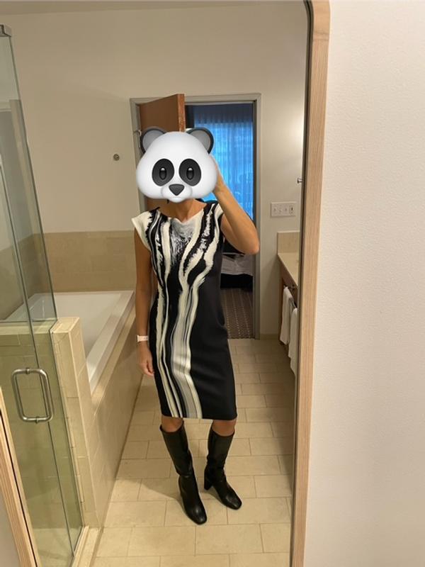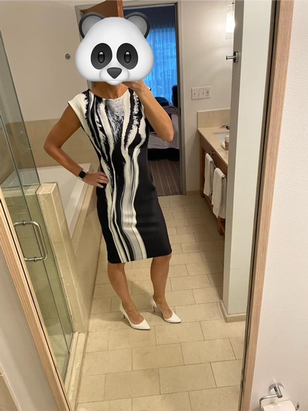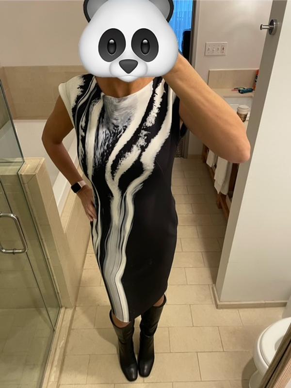 Looks better on the tall model than it does on me. It is also very heavy which was unexpected. Beautiful dress but just not for me.