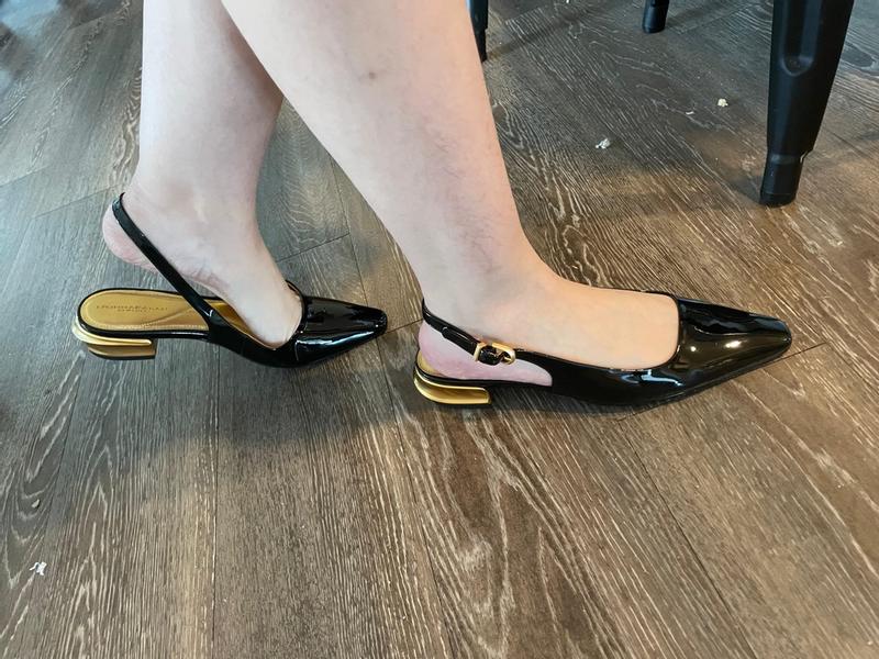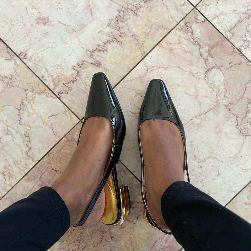 These shoes are perfect to wear to work as they are flat and dressy. They can be worn with skirts and pants which makes them versatile and I love the gold accents. They are a little stiff out of the box so the first day they did rub a bit but over time they should get better. They are well made and I think the shiny texture helps to dress up an outfit and allows you to go day into night. All in all these are very nice shoes that are well made but I do recommend that you don’t wear them all day the first few times as they don’t give a lot. I received these shoes in exchange for an honest review.