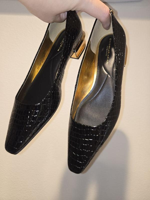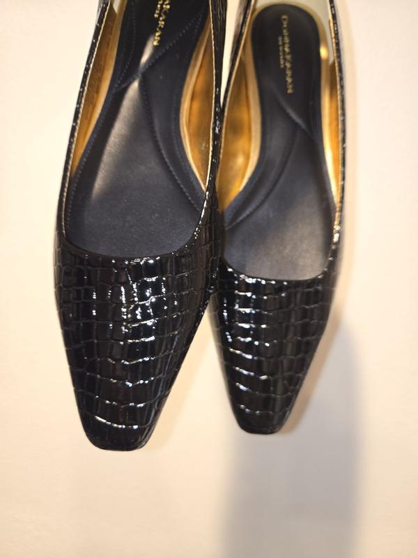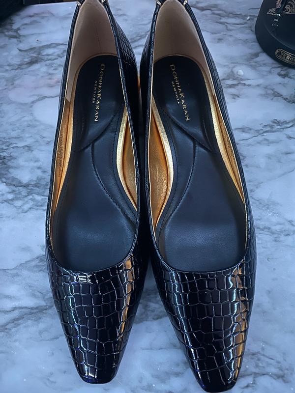 These are everything! I love these Donna Karan Savita Snip Toe Flats that I received from DKNY and Influenster in exchange for my honest review. I love the style of these. They are a pointed toe slip on with a block heel. The heel is 1-1/2 inches. It's a black Crocodile-effect patent leather chunky heel. I love the pointed toe and chunky heel combo. The crocodile design on these is everything. They are so gorgeous and sophisticated. I love the classic yet modern style. They feel good on your feet but the fit on these runs a little larger than expected. They are super stylish though and go good with lots of styles.