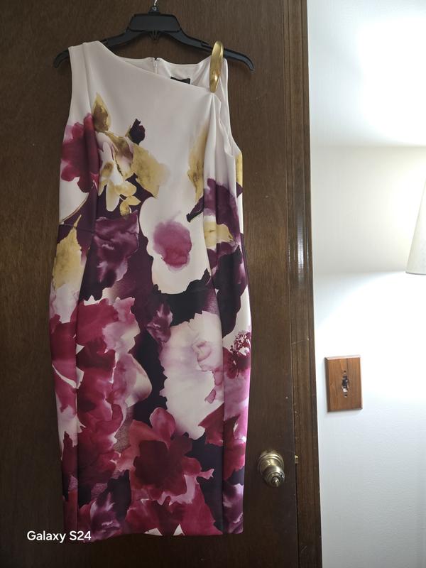 Bold blooms meet contemporary design in the Donna Karan New York Scuba Floral Asymmetrical-Neck Sheath Dress. With a sculpted fit and striking neckline, this look is perfect for events or stylish days at the office. Imagine stepping out with vibrant confidence and effortless flair.
