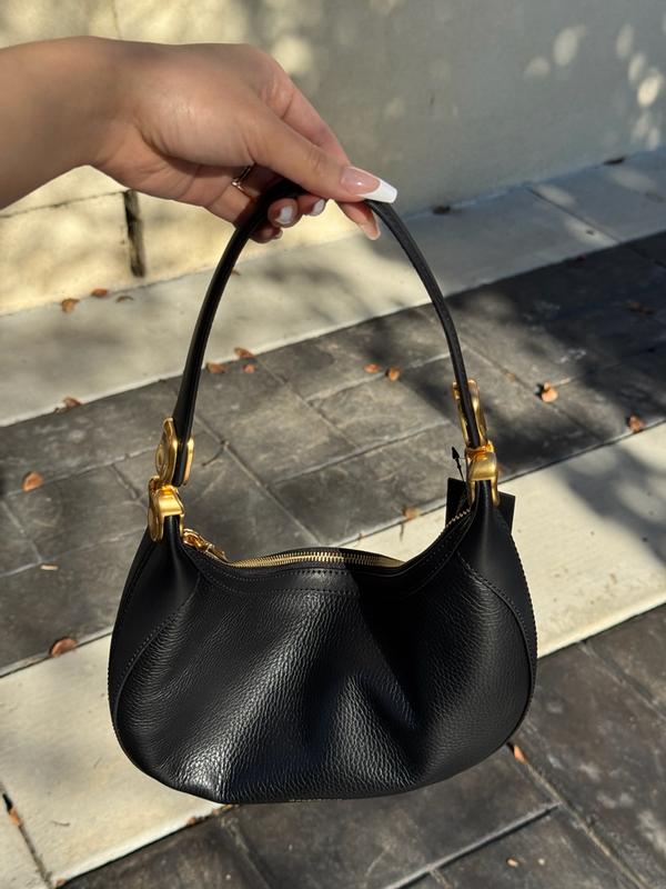 A leather shoulder bag, conveniently shaped and spacious, perfect for everyday use! The bag is lightweight, despite being made of leather and having bright gold hardware, very comfortable. Despite its small size, the bag fits everything you need: your phone, wallet, and beauty products! The hardware on the handle is also magnetic, so you can change the shape of the bag. That's really cool! The only drawback for me is that it only has one compartment; I would have liked at least a small pocket inside!
