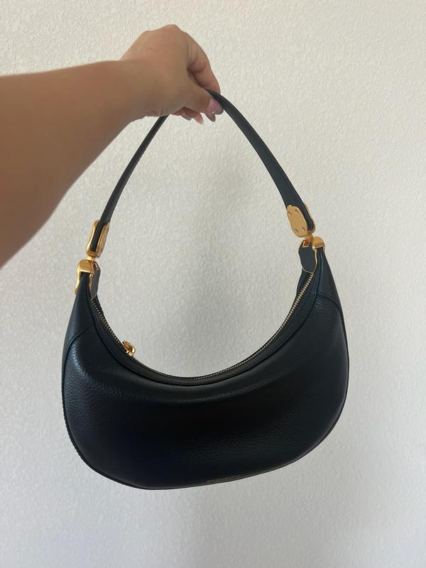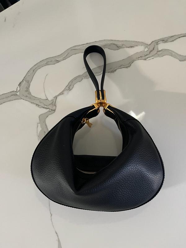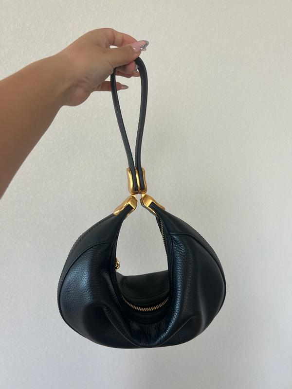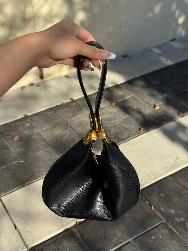 Such a beautiful and versatile bag! This is a staple shoulder bag that can fit a good amount of items, but the magnets also come together turning it into a dressy wristlet or top handle bag. Bag is pretty light considering the size. Would have loved for it to be a softer leather, but having it as is really helps hold the beautiful silhouette and structure.