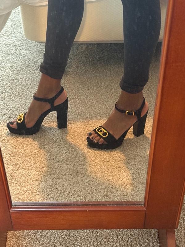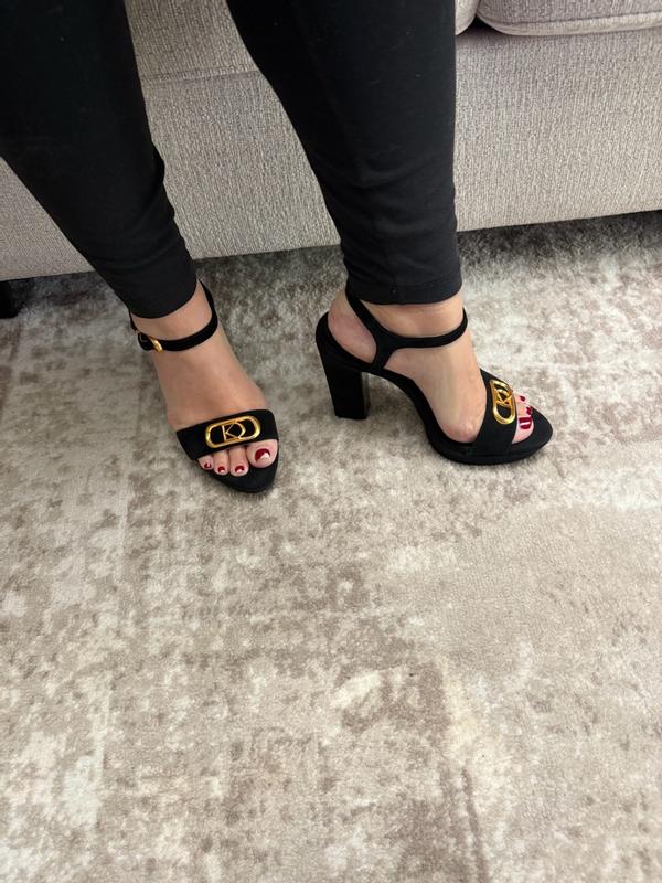 I didn’t have high expectations of these but they are my new go-to black heels. They are super comfortable and the inside has a nice cushion/padding. The block heel is easy to walk in. The material looks chic and so does the hardware. They are easy to dress up or down.