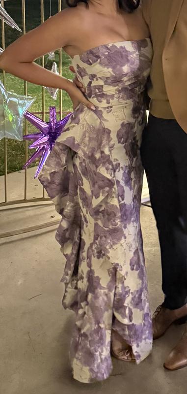 Donna Karan New YorkWomen's Strapless Ruffled Floral Procade Gown