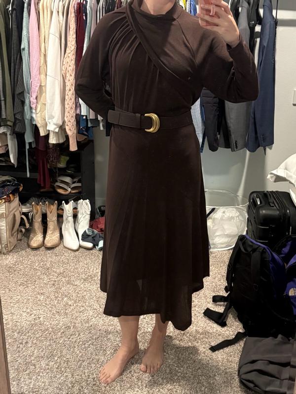 This is such a quality dress. It fit seamlessly and the color was dark and flattering. The belt adds some dimension to the shape as well. This brand is always a winner.