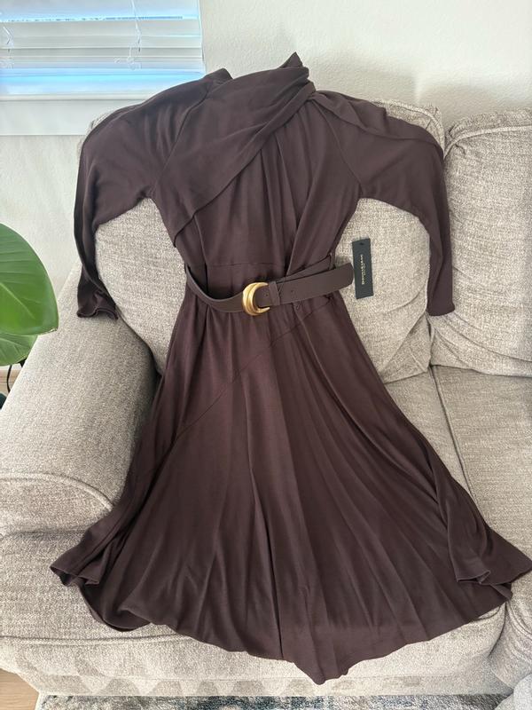 This dress is a new favorite in my closet. The neckline is the perfect blend of unique and sophisticated, and it frames my face beautifully. My favorite detail is the angled bottom hem; it flows so nicely when I walk and gives the dress a high-fashion feel. The quality is what you'd expect from DKNY, just beautiful and comfortable to wear. I feel so confident in this!