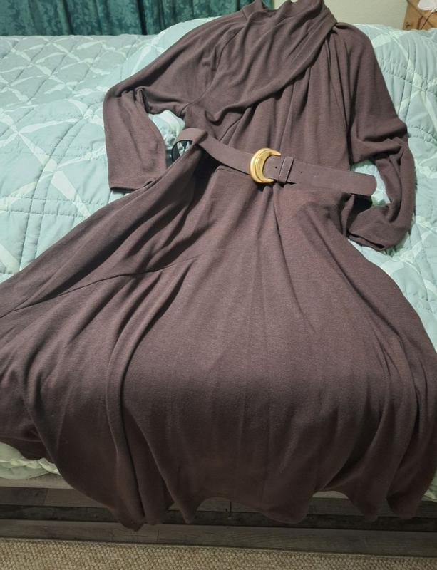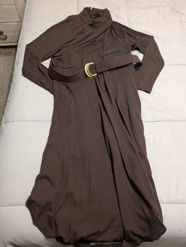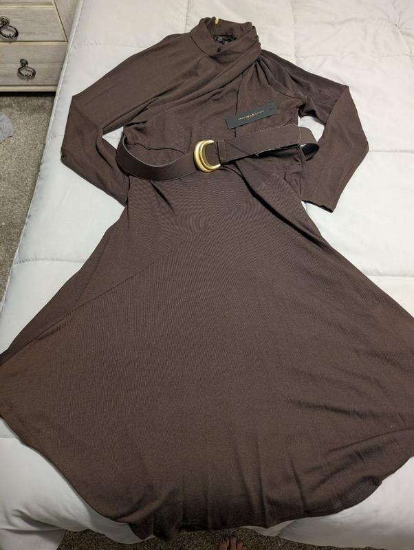 This dress is a new favorite in my closet. The neckline is the perfect blend of unique and sophisticated, and it frames my face beautifully. My favorite detail is the angled bottom hem; it flows so nicely when I walk and gives the dress a high-fashion feel. The quality is what you'd expect from DKNY, just beautiful and comfortable to wear. I feel so confident in this!