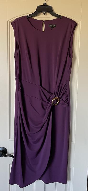 Beautiful dress & great color. Fabric is silky. Buckle is chic. Needs a full bust line but will try in 4 just in case.