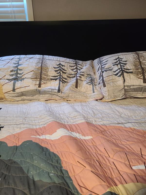 The lake retreat quilt set is gorgeous. The material is high quality. The print is absolutely perfect. Definitely makes my bed stand out. I couldn’t be happier. Shipping was fast and reliable. Look forward to buying a different set in the future.