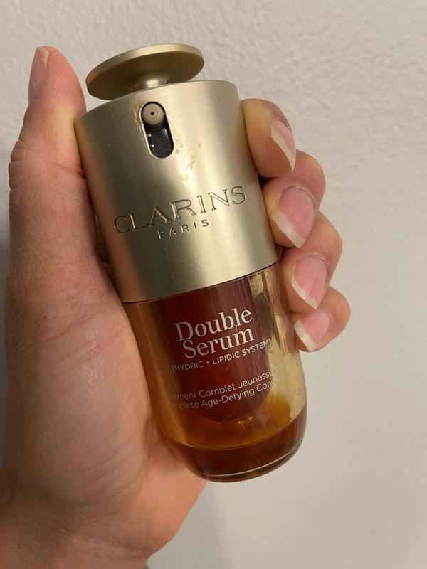 I wear this double serum both morning and night. This is my favorite Clarins product. I love how it makes my skin feel and look. Worth the investment!
