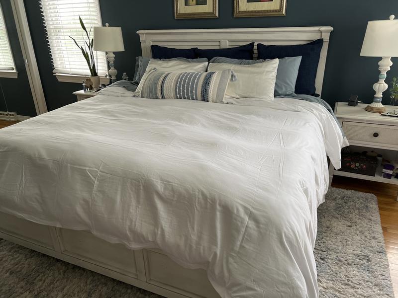 Finally a comforter that fits the bed! More than enough on the sides !!! Not to heavy but keeps you warm. I would definitely buy it again!