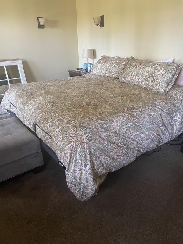This a very good size fit for a split king. The comforter for was too warm at this time of the year. We will use this winter.