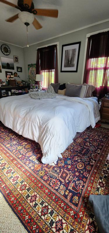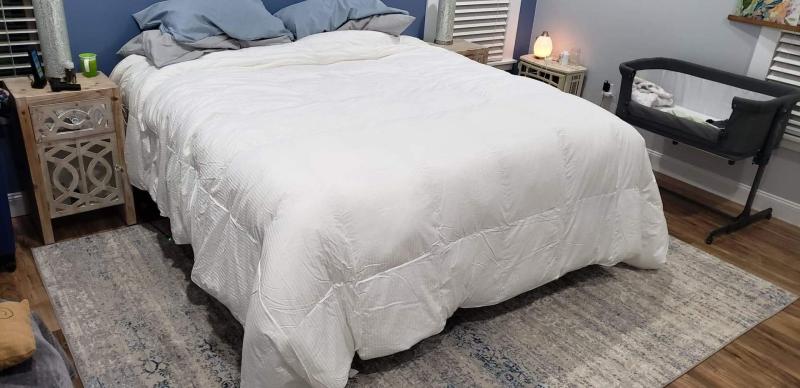 We finally hit the jackpot! This comforter is big enough for my partner and I to get a good night's sleep with enough covering. The comforter is fluffy and comfortable. It reminds me of hotel linen.