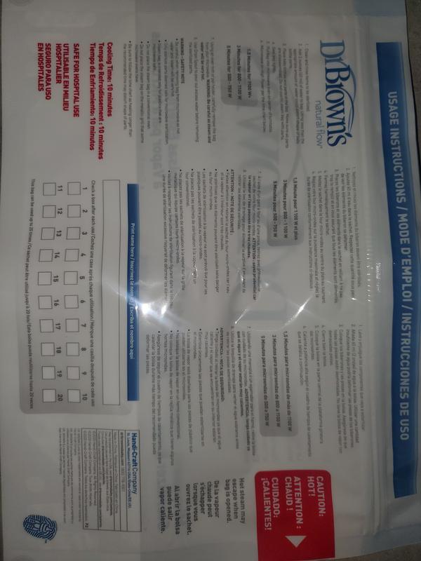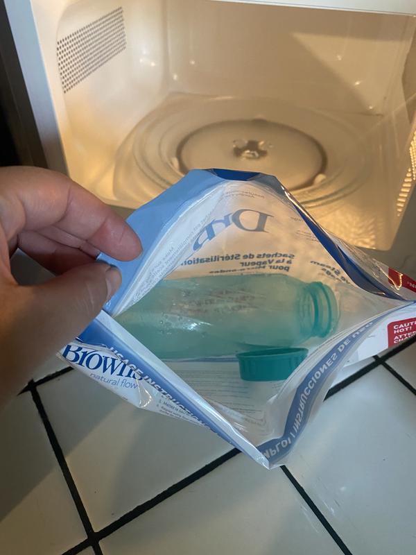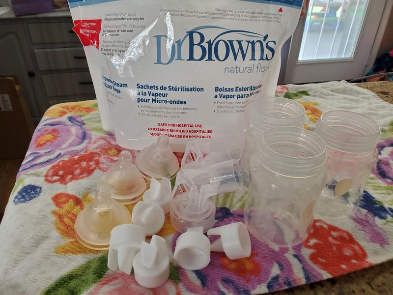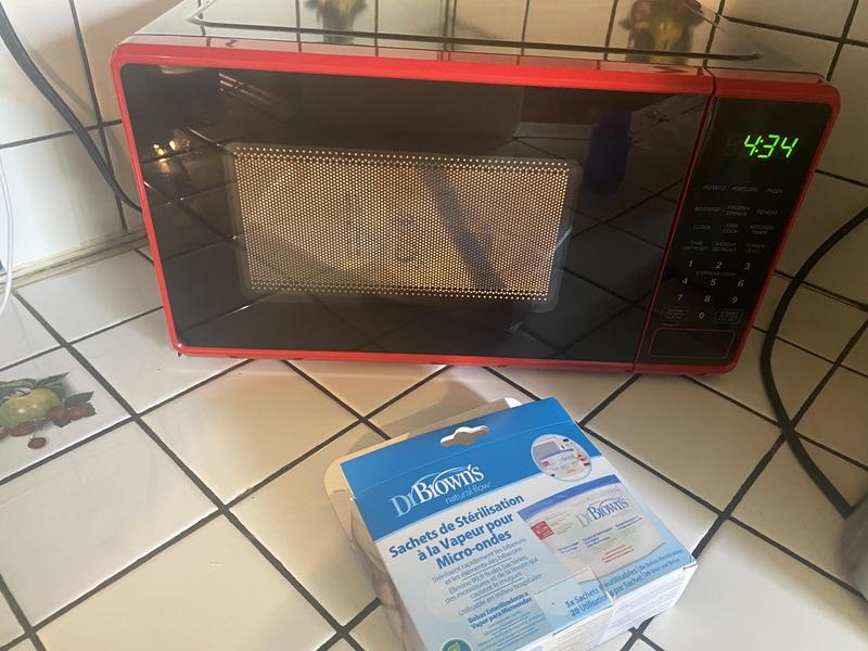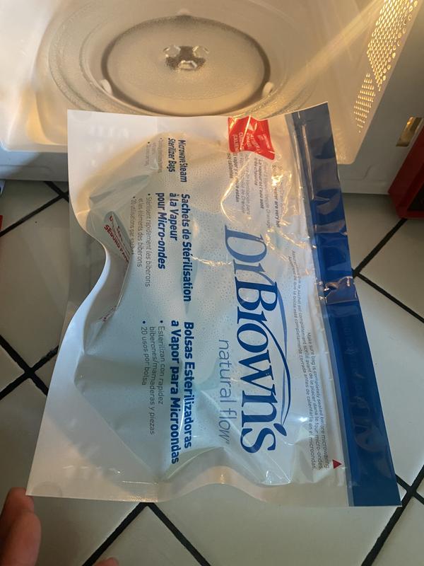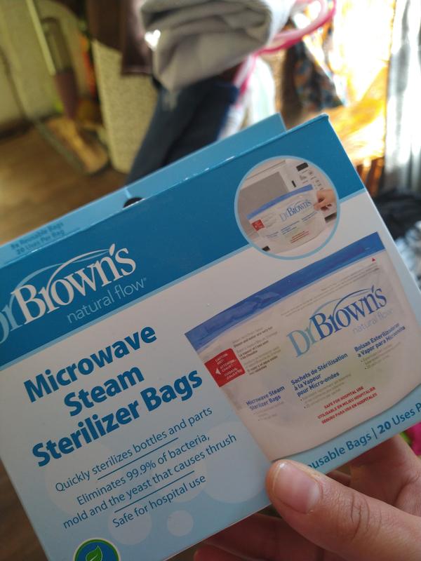 Dr. Brown's sent me this product to try...and I can truly say that it works. I was skeptical, at first, especially since some of the products I use can be "self sterilized". But using these microwavable bags was a breeze. I used the bags to sanitize several different types of bottles at once, including Dr. Brown's. It was much faster and easier than boiling water and having to watch the pot while my toddler runs amuck. Definitely faster than sterilizing each bottle one by one. Less than 3 minutes and everything was squeaky clean. It even got the formula residue off of a bottle nipple that I swore was a goner (vinegar, boiling etc nothing else worked)! A couple times in the bag and the residue scrubbed off easily. At first I was disappointed with the 5 bags, but each bag works for 20 cycles. That's a great value! I'm not even halfway through with one bag and I've sterilized all of my baby products twice or more. Even better, when I'm in a hurry and don't have time to put everything away I just leave the parts in the bag and have peace of mind knowing it's still clean.