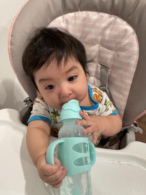 Narrow Sippy Straw Bottle with 100% Silicone Handles, 8oz, Pink