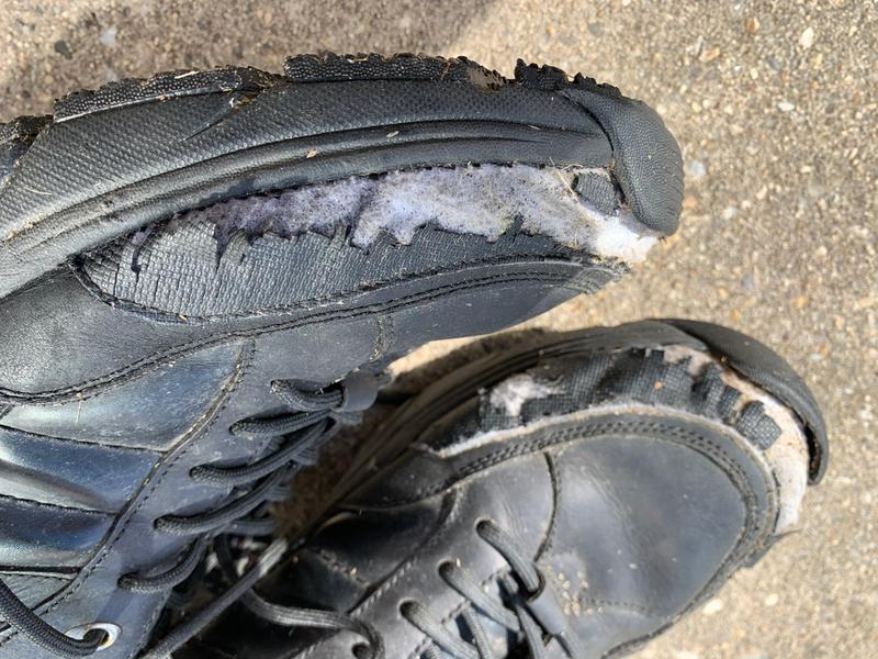 Thank you for your review of the Men's Cambridge II Slip Resistant Sneaker. We are sorry this recent purchase is not holding up for you and we want to help. Please call our Dr. Scholls Shoes Consumer Care Department at 1-800-558-7614. We are more than happy to help you.