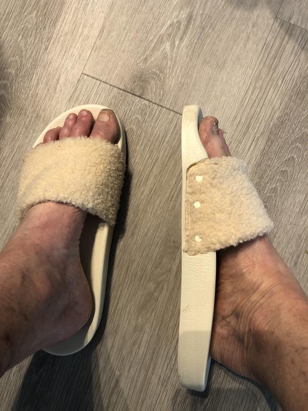 Very cute & typical footbed of Dr Scholl’s sandal footwear. Fit is perfect & shearling is soft & tight/wide enough. I use them mostly post shower. I’d recommend buying these.