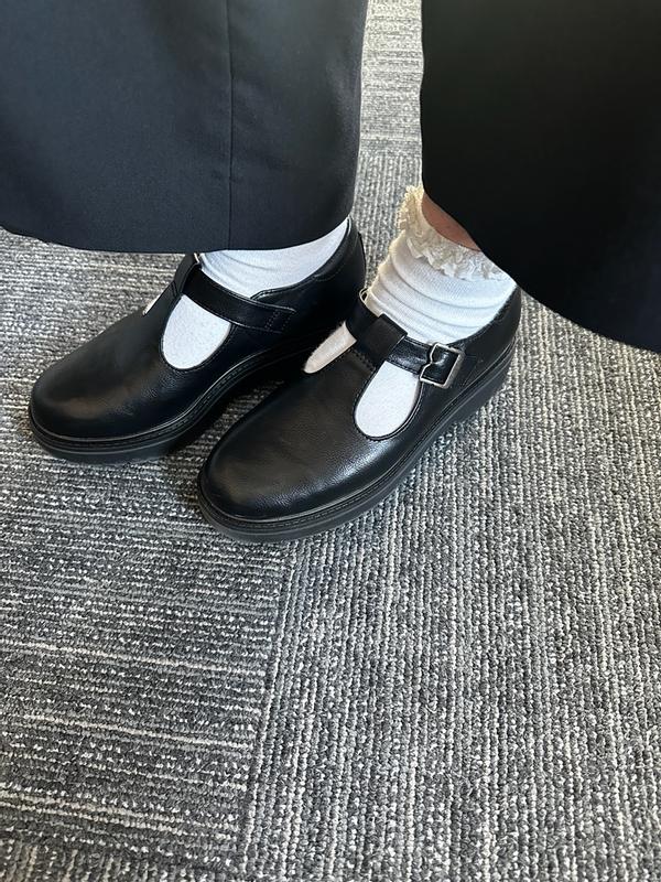 These Dr. Scholls Mary Jane’s are incredibly comfortable! They fit true to size and don’t squeeze my toes. I love their Wednesday Addams vibes too! They will go with a lot of outfits as you can dress them up and down. The material seems like it will last a long time.