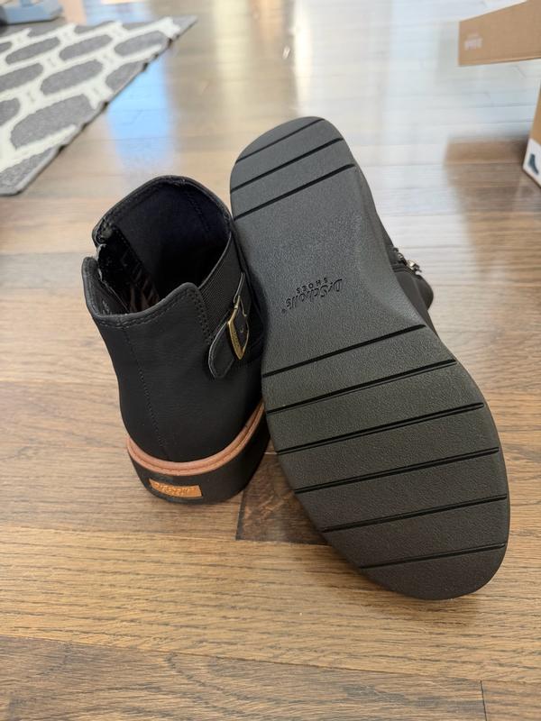 I love my Dr. Scholl’s boots they’re incredibly comfortable and super versatile! The black color goes with everything, making them perfect for everyday wear or dressing up a bit. The only thing to note is that the sizes do run a bit large. I normally wear a 9.5 in regular shoes, but I think an 8.5 or 9 would’ve fit better. I’d recommend going a half to a full size down, depending on the width of your feet. Other than that, they’re amazing stylish, comfy, and go with everything! Shipping was also extremely fast I ordered these 4 days ago and they are finally here. Since they arrived I have been walking everywhere in them and so far so good.